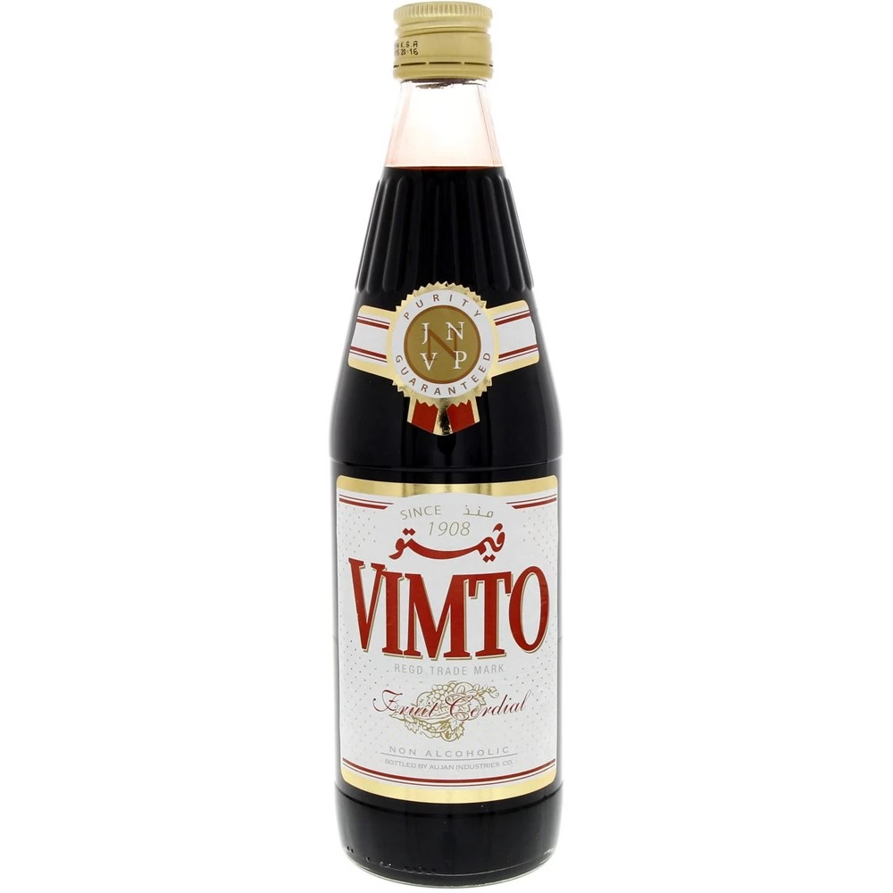 Vimto Fruit Cordial — 12 × 710 ml Concentrated mixed-fruit cordial (signature grape, blackcurrant & raspberry) for diluting with still or sparkling water. Includes twelve 710 ml bottles (8.52 L total concentrate). Serving suggestion: start with 1 part cordial : 4 parts water, adjust to taste. Store cool and dry; refrigerate after opening. Ingredients & allergens: see bottle.